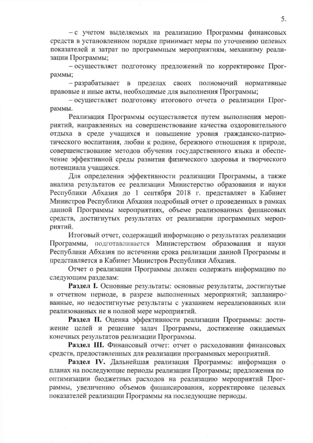 Постановление Кабинета Министров Республики Абхазия от 05.07.2018 № 94 "Об утверждении межведомственной целевой программы "Детский лагерь "Ажэеипшьаа-2018"