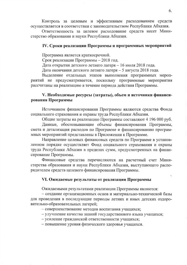 Постановление Кабинета Министров Республики Абхазия от 05.07.2018 № 94 "Об утверждении межведомственной целевой программы "Детский лагерь "Ажэеипшьаа-2018"