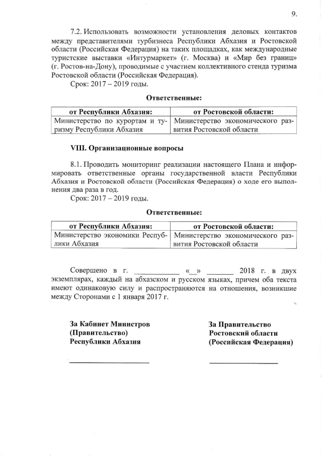 Постановление Кабинета Министров Республики Абхазия от 29.06.2018 № 81 "О подписании Плана по взаимодействию между Кабинетом Министров (Правительством) Республики Абхазия и Правительством Ростовской области (Российская Федерация) на 2017-2019 годы"
