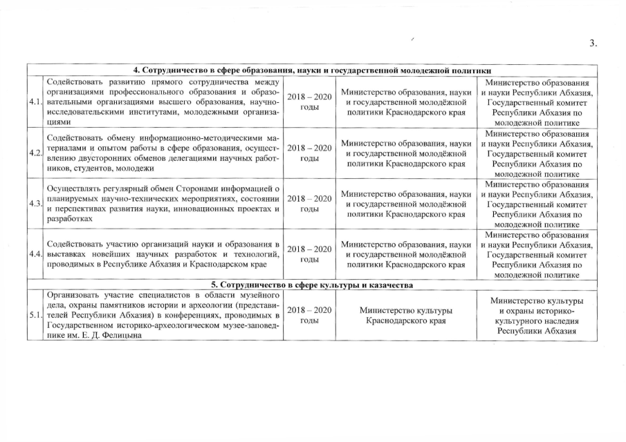 Постановление Кабинета Министров Республики Абхазия от 29.06.2018 № 80 "Об одобрении Программы мероприятий на 2018-2020 годы по реализации Соглашения между Правительством Республики Абхазия и Администрацией Краснодарского края (Российская Федерация) о торгово-экономическом, научно-техническом, гуманитарном и культурном сотрудничестве от 28.07.2009 г."