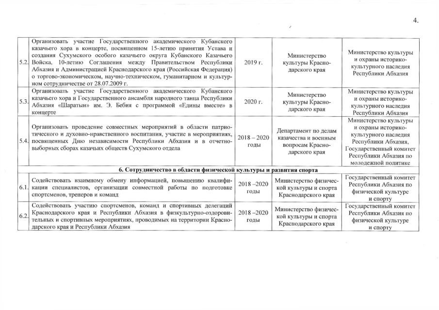 Постановление Кабинета Министров Республики Абхазия от 29.06.2018 № 80 "Об одобрении Программы мероприятий на 2018-2020 годы по реализации Соглашения между Правительством Республики Абхазия и Администрацией Краснодарского края (Российская Федерация) о торгово-экономическом, научно-техническом, гуманитарном и культурном сотрудничестве от 28.07.2009 г."