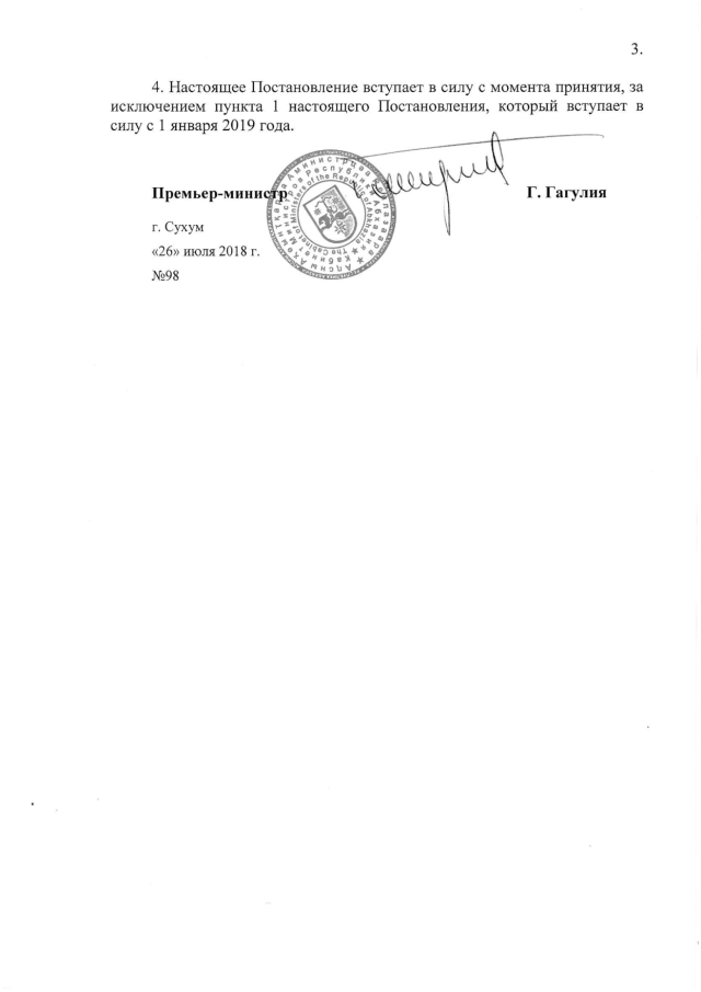 Постановление Кабинета Министров Республики Абхазия от 26.07.2018 № 98 "О внесении изменений в "Положение о Министерстве экономики Республики Абхазия", утвержденное Постановлением Кабинета Министров Республики Абхазия от 30 апреля 2015 года № 44"