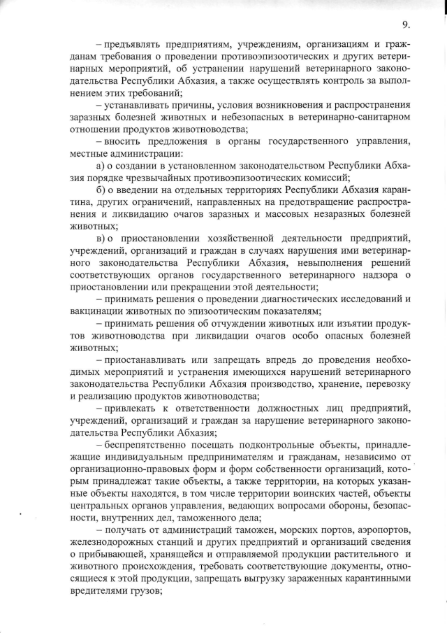 Постановление Кабинета Министров Республики Абхазия от 26.07.2018 № 104 "Об утверждении "Положения о Государственной службе Республики Абхазия по ветеринарному и фитосанитарному надзору"