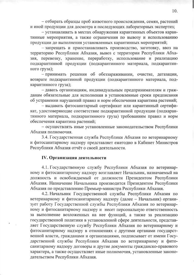 Постановление Кабинета Министров Республики Абхазия от 26.07.2018 № 104 "Об утверждении "Положения о Государственной службе Республики Абхазия по ветеринарному и фитосанитарному надзору"