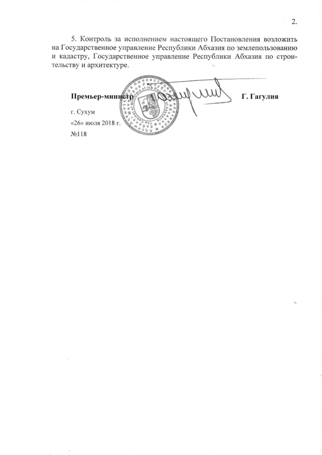 Постановление Кабинета Министров Республики Абхазия от 26.07.2018 № 118 "О даче согласия Администрации г. Сухум на предоставление ЖСК "Ахуштаара-2010" 0,384 га земли в г. Сухум для строительства коллективного жилого дома"
