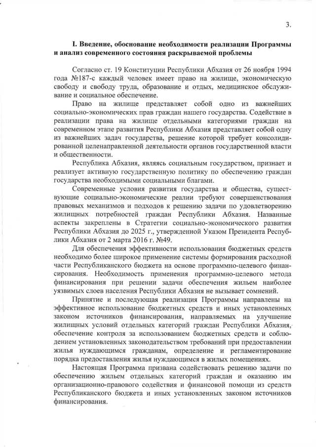 Постановление Кабинета Министров Республики Абхазия от 31.08.2018 № 119 "Об одобрении проекта государственной целевой программы "Обеспечение жильем отдельных категорий гравдан Республики Абхазия"