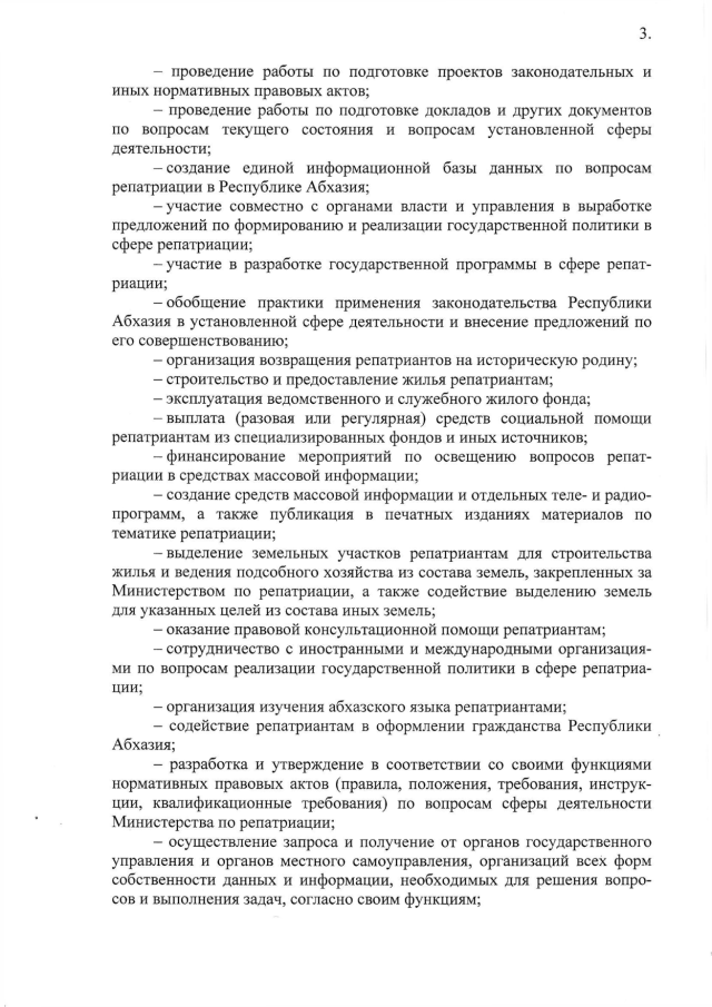 Постановление Кабинета Министров Республики Абхазия от 31.08.2018 № 121 "Об утверждении "Положения о Министерстве по репатриации Республики Абхазия"