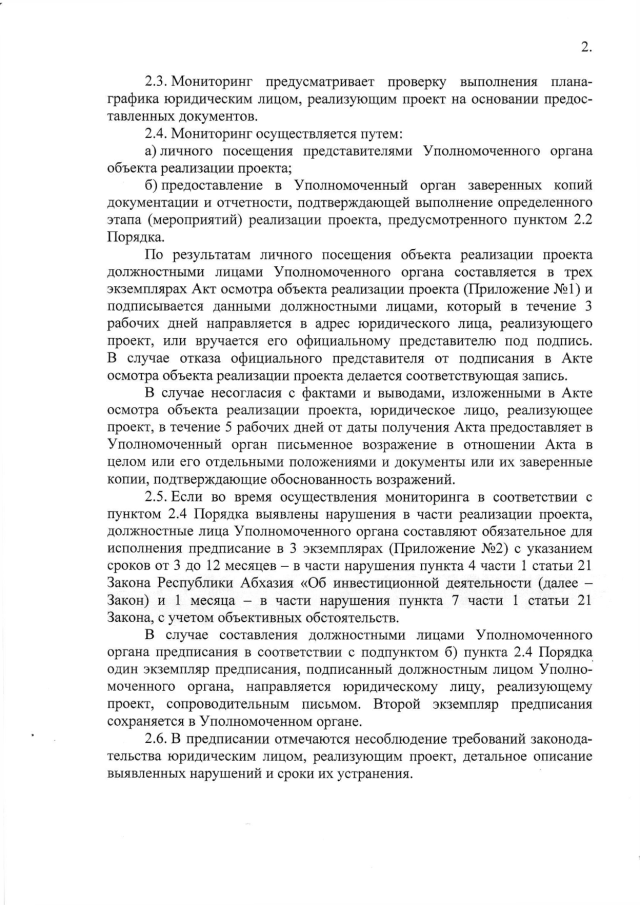 Постановление Кабинета Министров Республики Абхазия от 31.08.2018 № 123 "Об утверждении "Порядка контроля за исполнением инвесторами заявленных обязательств по проектам, включенным в Государственный реестр преференциальных инвестиционных проектов, а также за исполнением инвесторами обязательств, принятых в рамках инвестиционных договоров"