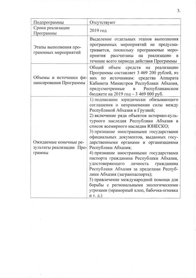 Постановление Кабинета Министров Республики Абхазия от 28.09.2018 № 137 "Об утверждении межведомственной целевой программы на 2019 год "Финансово-материальное обеспечение деятельности компетентных центральных органов государственного управления и должностных лиц, направленной на реализацию внешнеполитических задач по представлению интересов Республики Абхазия на международных Женевских дискуссиях по безопасности и стабильности на Южном Кавказе"