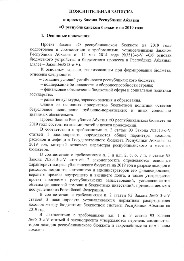 Постановление Кабинета Министров Республики Абхазия от 30.10.2018 № 149 "О проекте Закона Республики Абхазия "О республиканском бюджете на 2019 год"