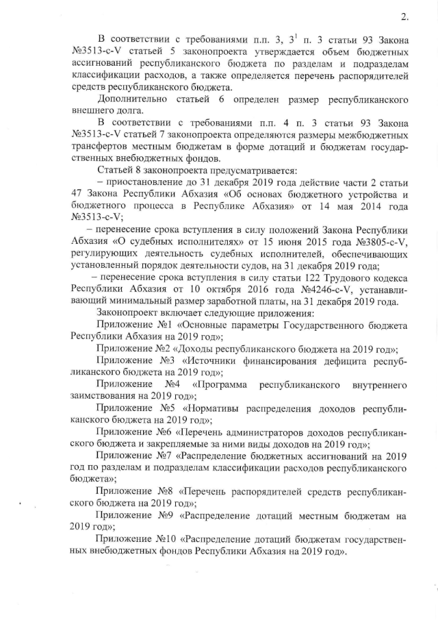 Постановление Кабинета Министров Республики Абхазия от 30.10.2018 № 149 "О проекте Закона Республики Абхазия "О республиканском бюджете на 2019 год"