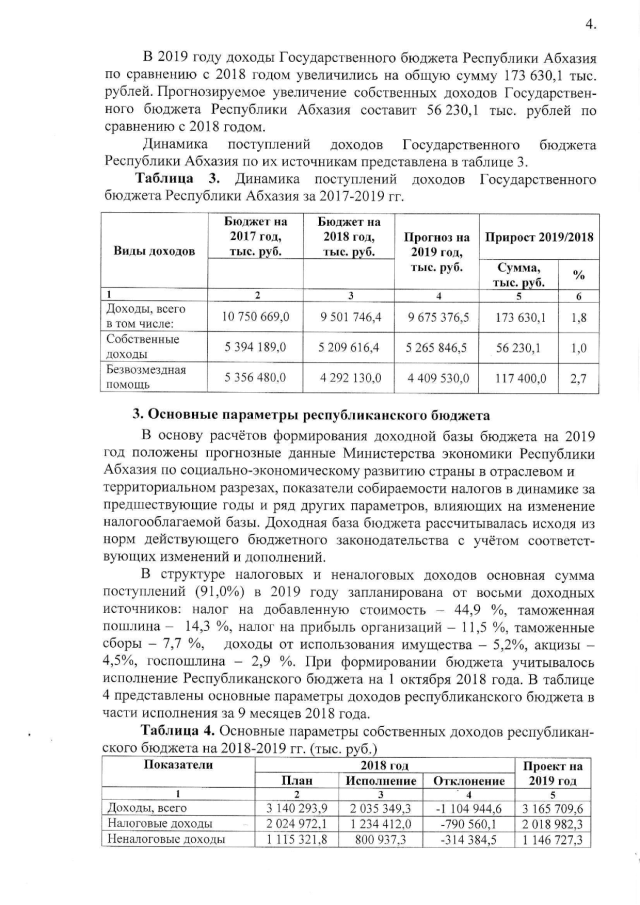 Постановление Кабинета Министров Республики Абхазия от 30.10.2018 № 149 "О проекте Закона Республики Абхазия "О республиканском бюджете на 2019 год"