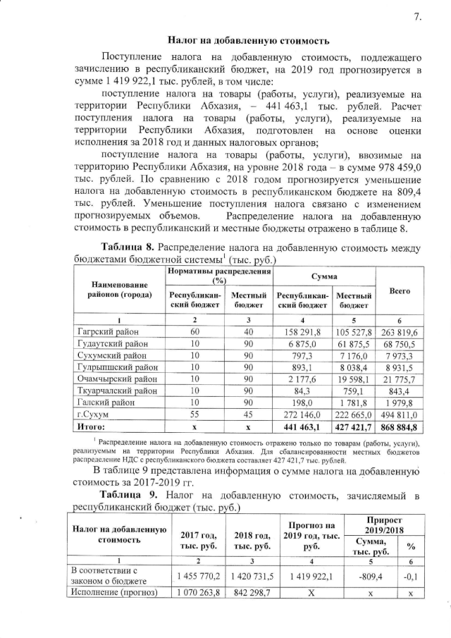 Постановление Кабинета Министров Республики Абхазия от 30.10.2018 № 149 "О проекте Закона Республики Абхазия "О республиканском бюджете на 2019 год"