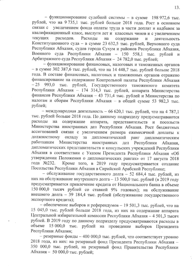 Постановление Кабинета Министров Республики Абхазия от 30.10.2018 № 149 "О проекте Закона Республики Абхазия "О республиканском бюджете на 2019 год"