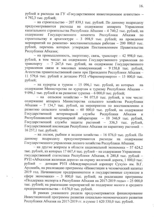 Постановление Кабинета Министров Республики Абхазия от 30.10.2018 № 149 "О проекте Закона Республики Абхазия "О республиканском бюджете на 2019 год"