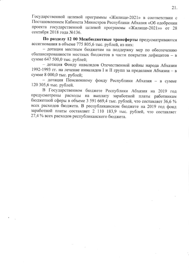 Постановление Кабинета Министров Республики Абхазия от 30.10.2018 № 149 "О проекте Закона Республики Абхазия "О республиканском бюджете на 2019 год"