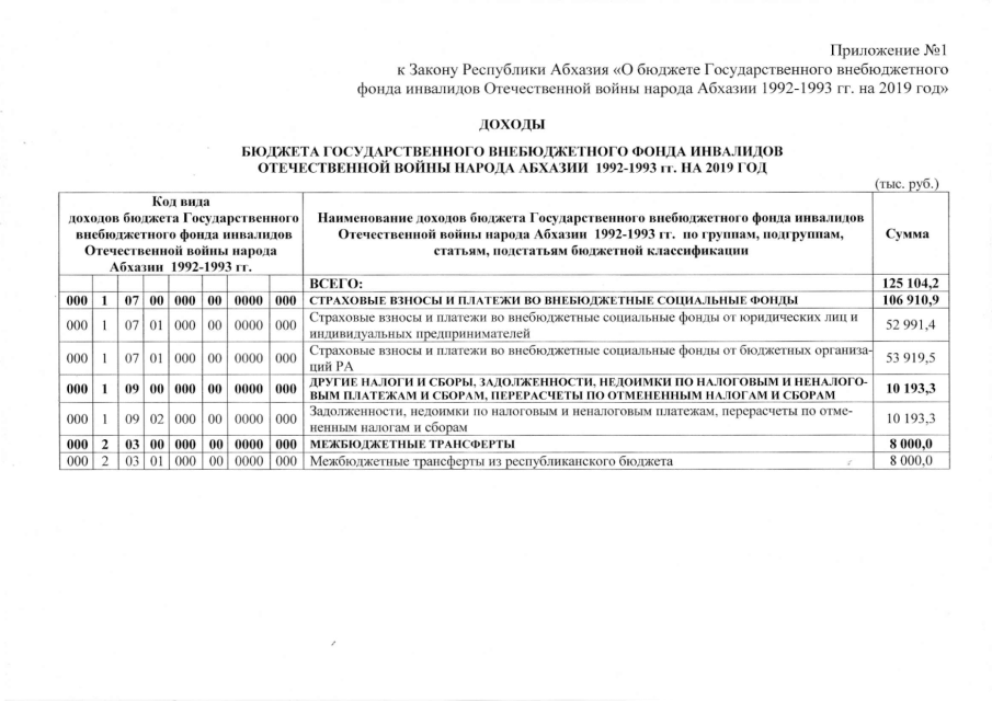Постановление Кабинета Министров Республики Абхазия от 30.10.2018 № 153 "О проекте Закона Республики Абхазия "О бюджете Государственного внебюджетного фонда инвалидов Отечественной войны народа Абхазии 1992-1993 гг. на 2019 год", утверждении штатного расписания и сметы расходов аппарата управления Государственного внебюджетного фонда инвалидов Отечественной войны народа Абхазии 1992-1993 гг. на 2019 год"