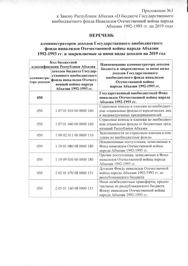 Постановление Кабинета Министров Республики Абхазия от 30.10.2018 № 153 "О проекте Закона Республики Абхазия "О бюджете Государственного внебюджетного фонда инвалидов Отечественной войны народа Абхазии 1992-1993 гг. на 2019 год", утверждении штатного расписания и сметы расходов аппарата управления Государственного внебюджетного фонда инвалидов Отечественной войны народа Абхазии 1992-1993 гг. на 2019 год"