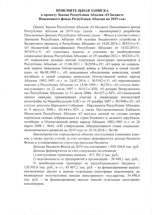 Постановление Кабинета Министров Республики Абхазия от 30.10.2018 № 155 "О проекте Закона Республики Абхазия "О бюджете Пенсионного фонда Республики Абхазия на 2019 год", утверждении штатного расписания и сметы расходов аппарата управления Пенсионного фонда Республики Абхазия на 2019 год"