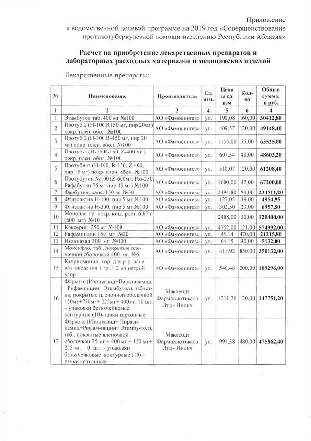 Постановление Кабинета Министров Республики Абхазия от 30.11.2018 № 171 "Об утверждении ведомственной целевой программы на 2019 год "Совершенствование противотуберкулезной помощи населению Республики Абхазия"