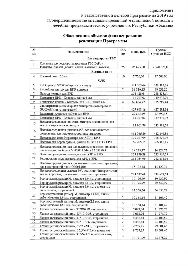 Постановление Кабинета Министров Республики Абхазия от 30.11.2018 № 175 "Об утверждении ведомственной целевой программы на 2019 год "Совершенствование специализированной медицинской помощи в лечебно-профилактических учреждениях Республики Абхазия"
