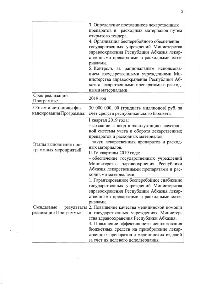 Постановление Кабинета Министров Республики Абхазия от 30.11.2018 № 176 "Об утверждении ведомственной целевой программы на 2019 год "Централизованное приобретение лекарственных препаратов и расходных материалов для обеспечения государственных учревдений Министерства здравоохранения Республики Абхазия"