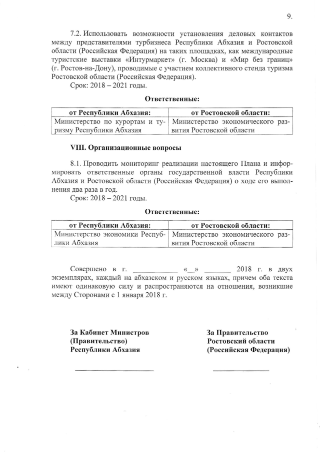 Постановление Кабинета Министров Республики Абхазия от 07.11.2018 № 158 "О подписании Плана по взаимодействию между Кабинетом Министров (Правительством) Республики Абхазия и Правительством Ростовской области (Российская Федерация) на 2018-2021 годы"