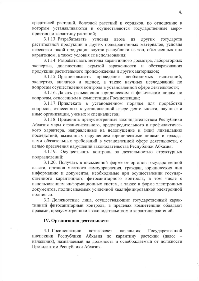 Постановление Кабинета Министров Республики Абхазия от 29.11.2018 № 166 "Об утверждении "Положения о Государственной инспекции Республики Абхазия по карантину растений"