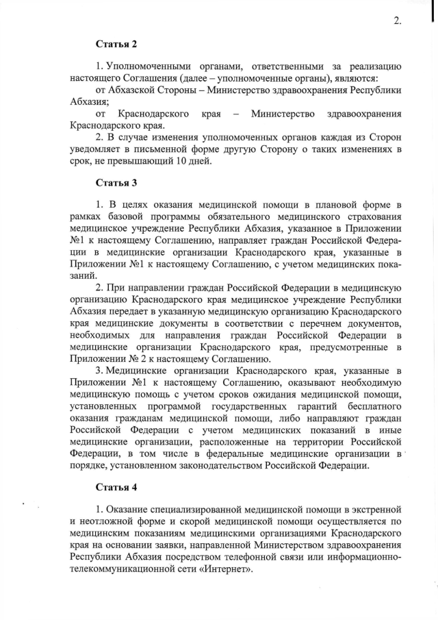 Постановление Кабинета Министров Республики Абхазия от 30.11.2018 № 167 "О заключении Соглашения между Правительством Республики Абхазия и Министерством здравоохранения Краснодарского края о порядке организации предоставления медицинской помощи в системе обязательного медицинского страхования гражданам Российской Федерации, постоянно проживающим на территории Республики Абхазия, в медицинских организациях Российской Федерации"