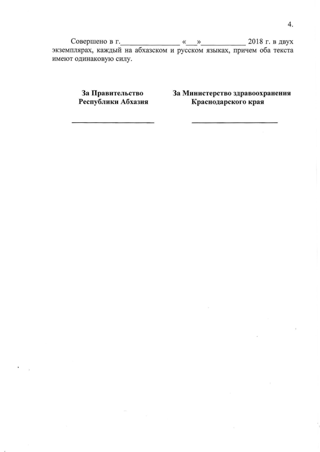 Постановление Кабинета Министров Республики Абхазия от 30.11.2018 № 167 "О заключении Соглашения между Правительством Республики Абхазия и Министерством здравоохранения Краснодарского края о порядке организации предоставления медицинской помощи в системе обязательного медицинского страхования гражданам Российской Федерации, постоянно проживающим на территории Республики Абхазия, в медицинских организациях Российской Федерации"