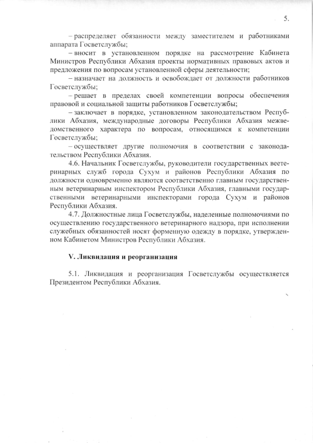 Постановление Кабинета Министров Республики Абхазия от 30.11.2018 № 181 "Об утверждении "Положения о Государственной ветеринарной службе Республики Абхазия"