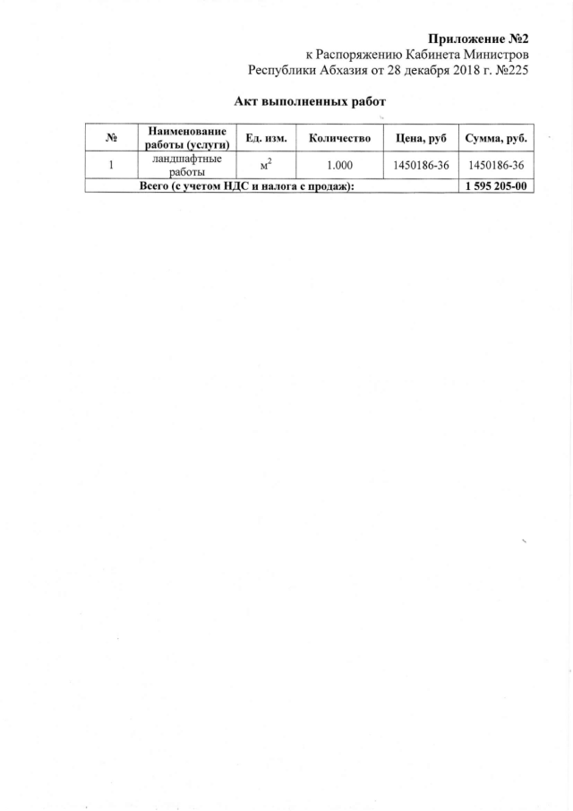 Распоряжение Кабинета Министров Республики Абхазия от 28.12.2018 № 225 "О безвозмездной передаче Аппаратом Кабинета Министров Республики Абхазия в собственность г. Сухум декоративных растений"