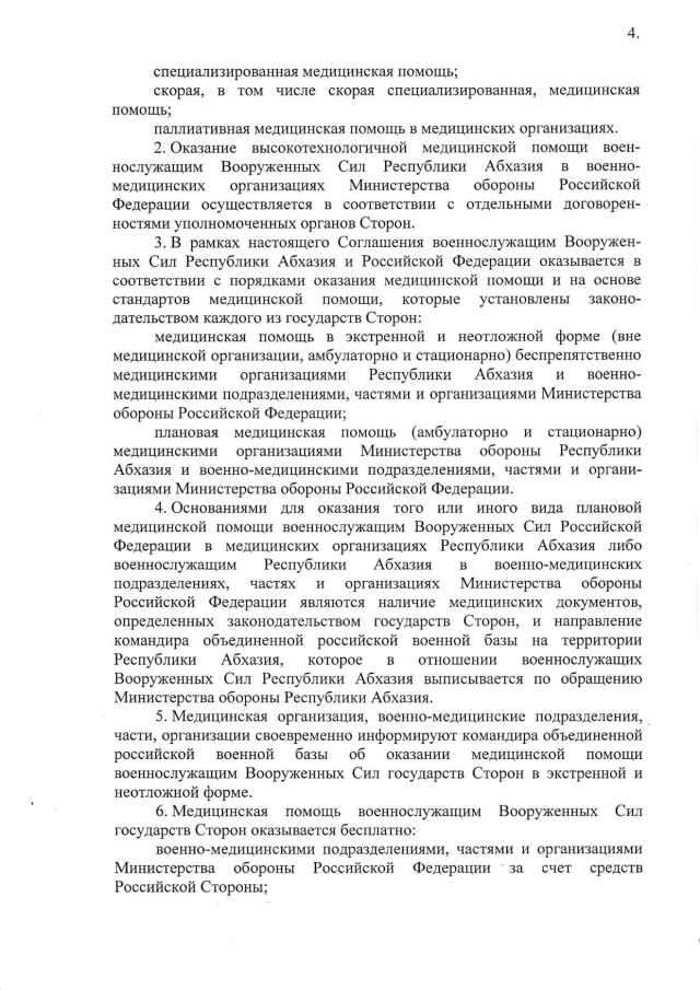 Распоряжение Кабинета Министров Республики Абхазия от 29.12.2014 № 121 "О заключении "Соглашения между Правительством Республики Абхазия и Правительством Российской Федерации об оказании медицинской помощи военнослужащим Вооруженных Сил"