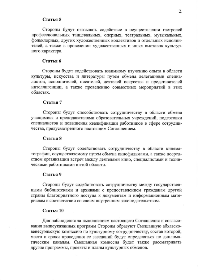 Распоряжение Кабинета Министров Республики Абхазия от 29.07.2016 № 41 "О заключении Соглашения между Правительством Республики Абхазия и Правительством Боливарианской Республики Венесуэла о сотрудничестве в области культуры"