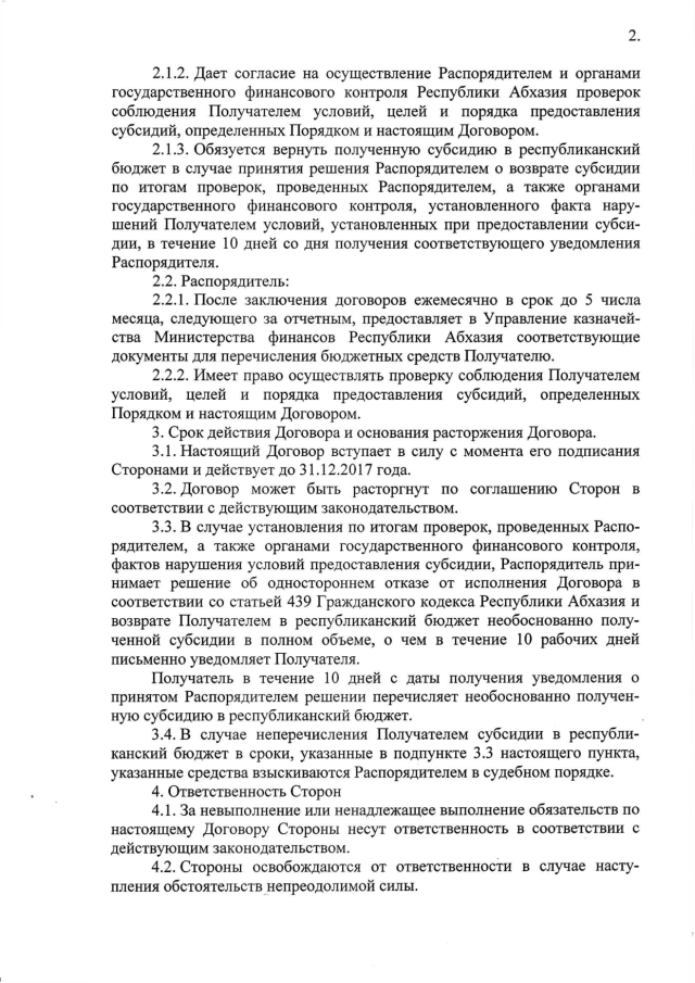 Распоряжение Кабинета Министров Республики Абхазия от 10.02.2017 № 10 "Об утверждении "Порядка определения объема и предоставления субсидий из республиканского бюджета Благотворительному фонду "АЗХАРА" для оказания материальной помощи семьям при рождении третьего или последующего ребенка на 2017 год"