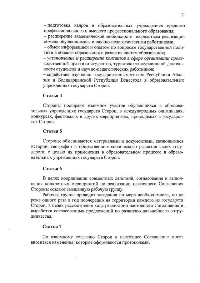Распоряжение Кабинета Министров Республики Абхазия от 03.03.2017 № 12 "О заключении Соглашения между Правительством Республики Абхазия и Правительством Боливарианской Республики Венесуэла о сотрудничестве в области образования"
