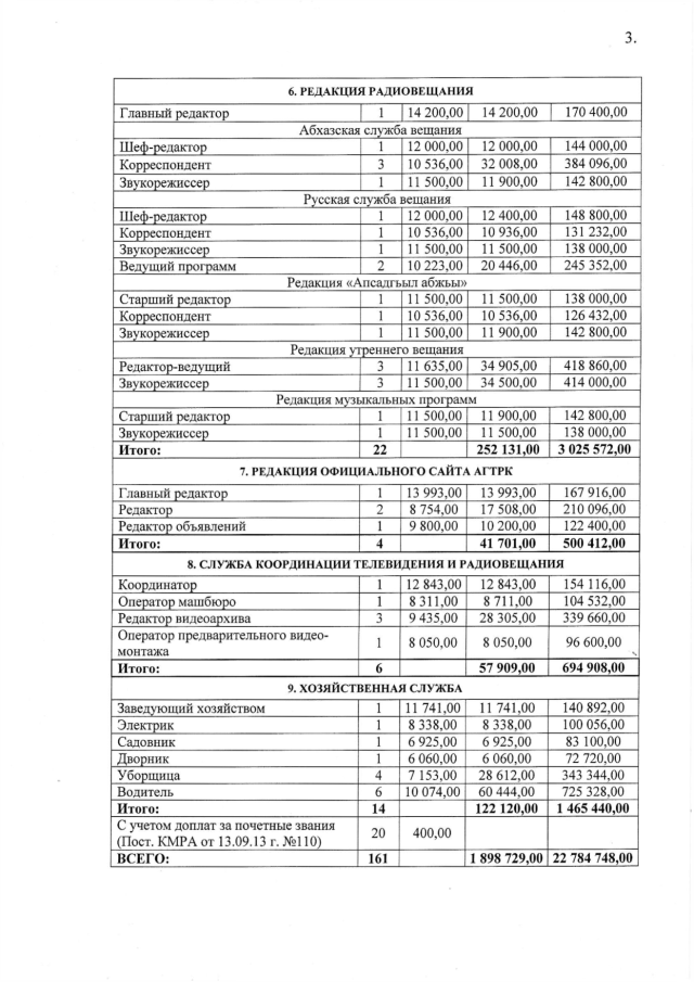 Распоряжение Кабинета Министров Республики Абхазия от 06.06.2017 № 30 "Об утверждении структуры и штатного расписания Республиканского государственного учреждения "Абхазская государственная телерадиокомпания"