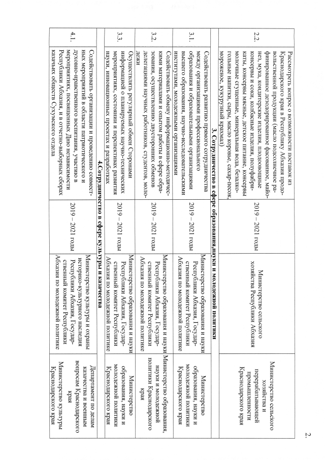 Постановление Кабинета Министров Республики Абхазия от 08.02.2019 № 18 "Об одобрении Программы мероприятий на 2019 - 2021 годы по реализации Соглашения между Правительством Республики Абхазия и Администрацией Краснодарского края (Российская Федерация) о торгово-экономическом, научно-техническом, гуманитарном и культурном сотрудничестве от 28.07.2009 г."