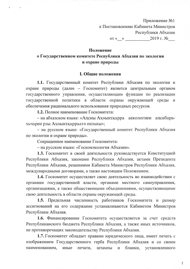 Постановление Кабинета Министров Республики Абхазия от 28.02.2019 №30 "Об утверждении <Положения о Государственном комитете Республики Абхазия по экологии и охране природы>"