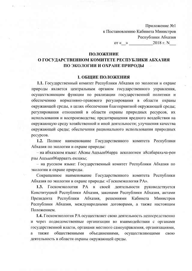 Постановление Кабинета Министров Республики Абхазия от 28.02.2019 №30 "Об утверждении <Положения о Государственном комитете Республики Абхазия по экологии и охране природы>"