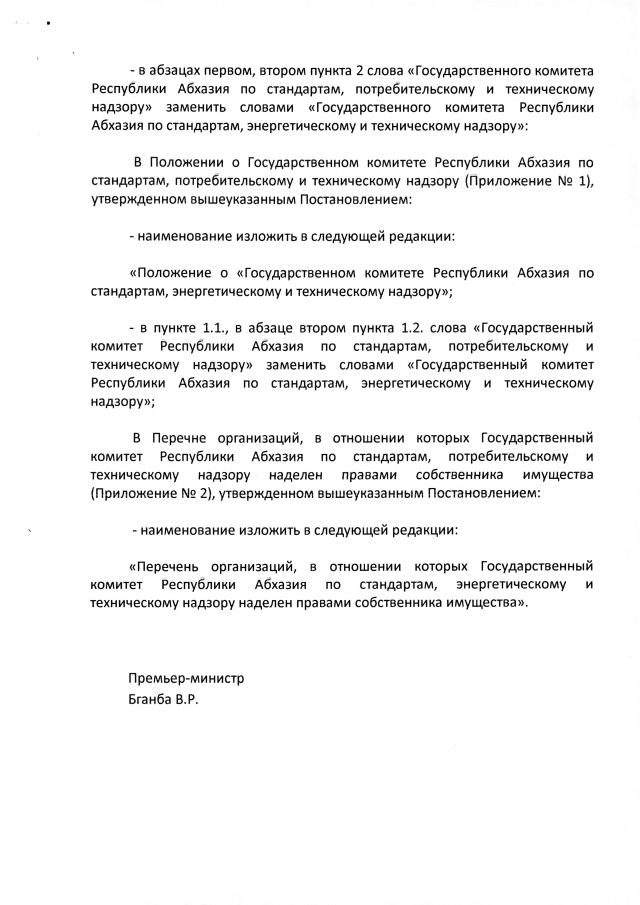 Постановление Кабинета Министров Республики Абхазия от 28.02.2019 №29 "О внесении изменений в Постановление Кабинета Министров Республики Абхазия от 17 декабря 2014 г. №94 <Об утверждении <Положения о Государственном комитете Республики Абхазия по стандартам, потребительскому и техническому надзору>"