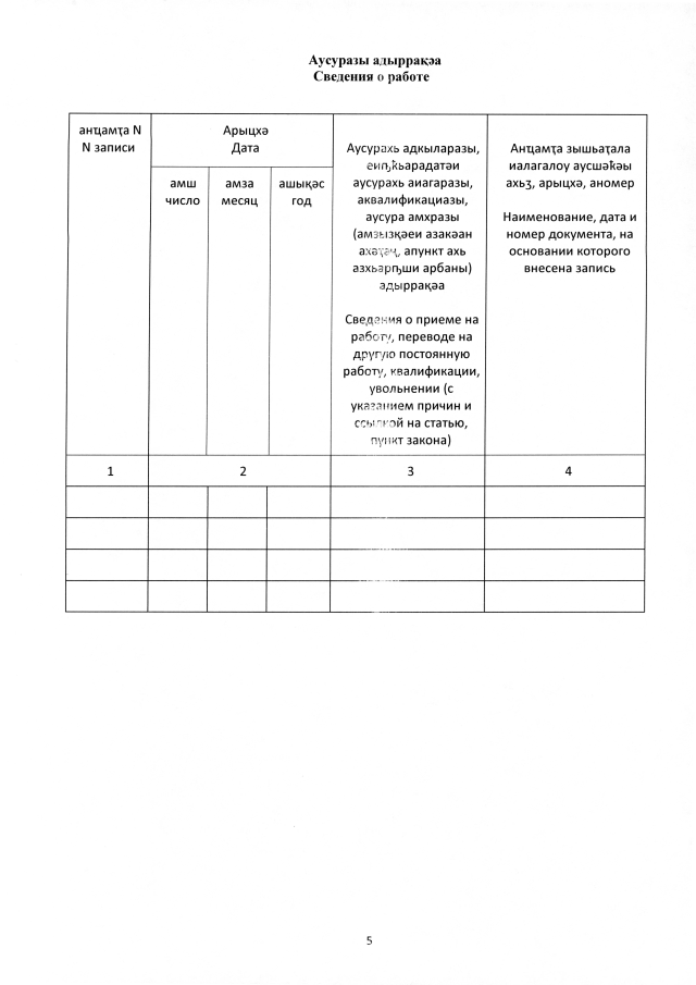 Постановление Кабинета Министров Республики Абхазия от 02.02.2019 №26 "Об утверждении Формы, Порядка ведения и хранения трудовых книжек"