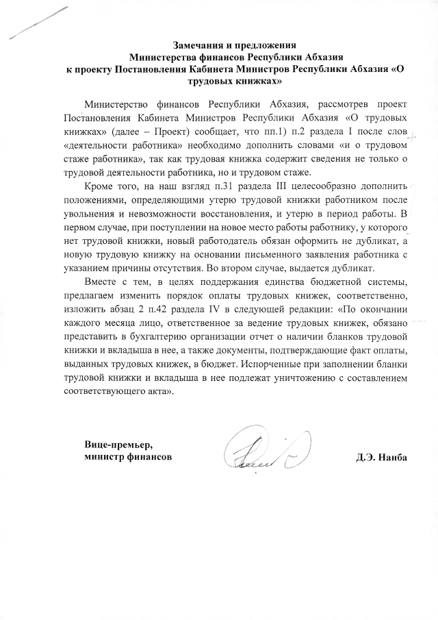 Постановление Кабинета Министров Республики Абхазия от 02.02.2019 №26 "Об утверждении Формы, Порядка ведения и хранения трудовых книжек"