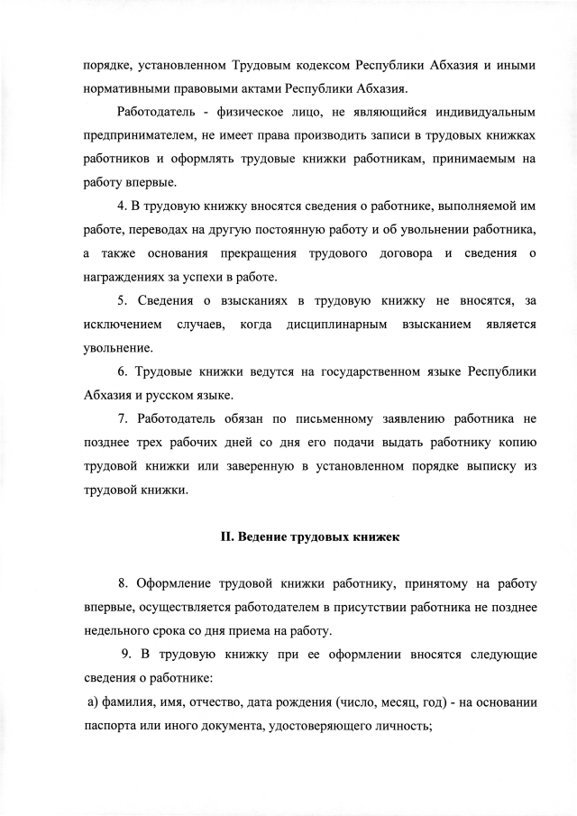 Постановление Кабинета Министров Республики Абхазия от 02.02.2019 №26 "Об утверждении Формы, Порядка ведения и хранения трудовых книжек"