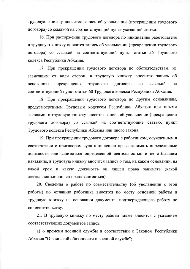 Постановление Кабинета Министров Республики Абхазия от 02.02.2019 №26 "Об утверждении Формы, Порядка ведения и хранения трудовых книжек"