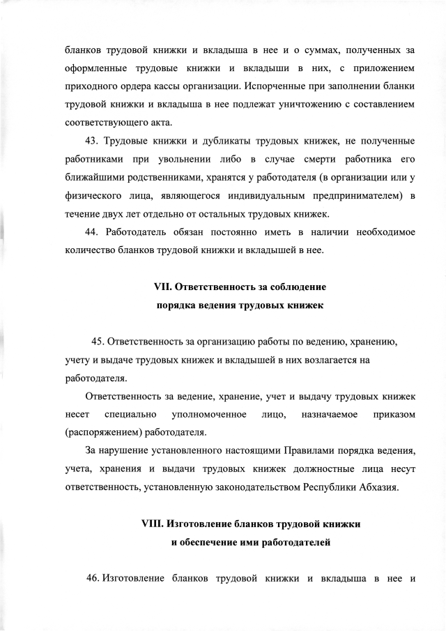 Постановление Кабинета Министров Республики Абхазия от 02.02.2019 №26 "Об утверждении Формы, Порядка ведения и хранения трудовых книжек"