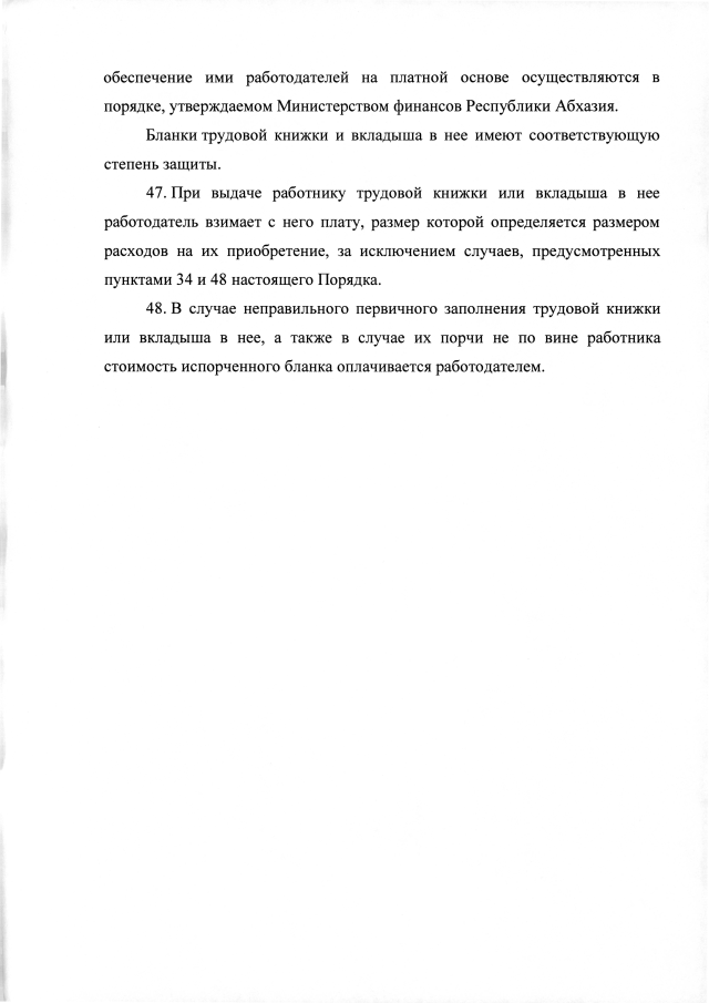 Постановление Кабинета Министров Республики Абхазия от 02.02.2019 №26 "Об утверждении Формы, Порядка ведения и хранения трудовых книжек"