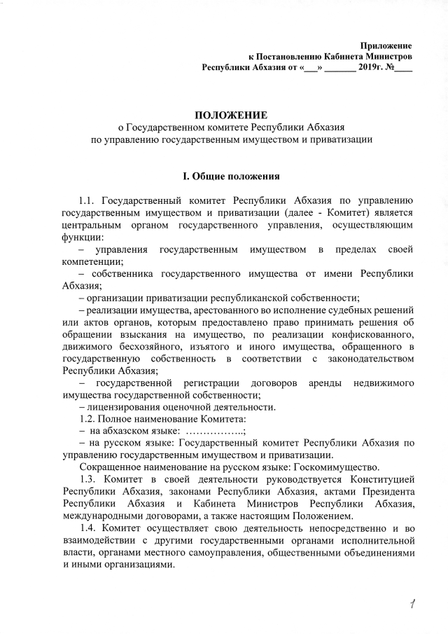 Постановление Кабинета Министров Республики Абхазия от 28.02.2019 №31 "Об утверждении Положения о Государственном комитете Республики Абхазия по управлению государственным имуществом и приватизации"
