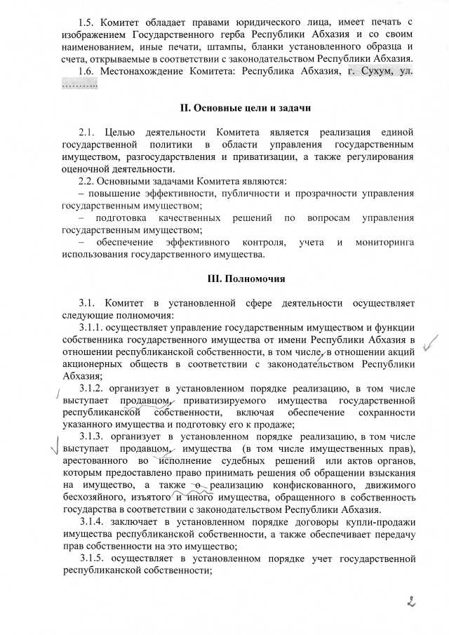 Постановление Кабинета Министров Республики Абхазия от 28.02.2019 №31 "Об утверждении Положения о Государственном комитете Республики Абхазия по управлению государственным имуществом и приватизации"