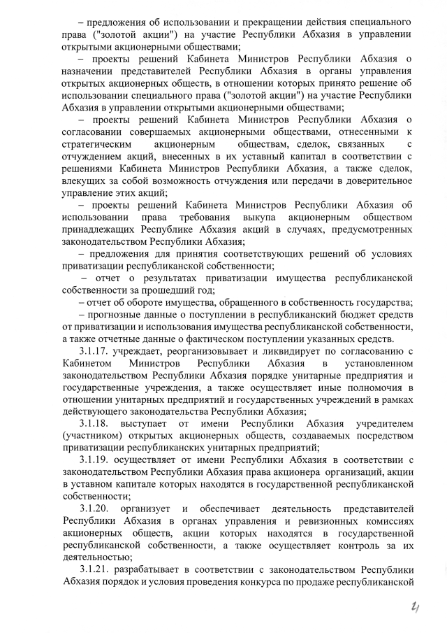 Постановление Кабинета Министров Республики Абхазия от 28.02.2019 №31 "Об утверждении Положения о Государственном комитете Республики Абхазия по управлению государственным имуществом и приватизации"